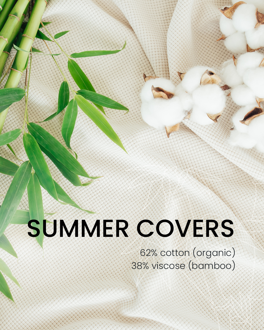 COVER ESTIVE ecologiche realizzate con il 62% di cotone organico e il 38% di bambù rinnovabile.
