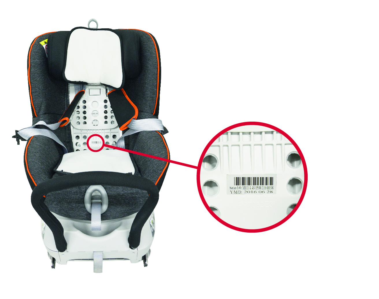 - 4. Il numero di serie è posizionato sull'involucro del seggiolino.